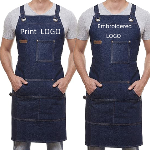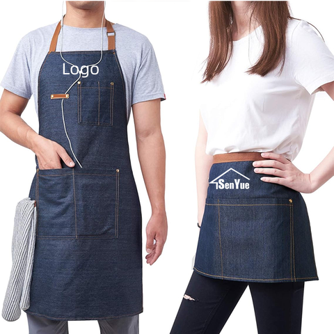 Blaue Denim-Schürze Lange Schürze für Familie Paar Reinigung Kochen Küche DIY Kurze Schürze mit Individuellem Logo
